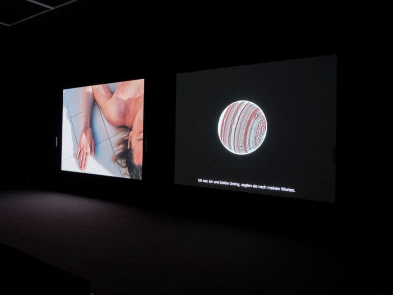 Installationsansicht Kunsthalle Mainz: melanie bonajo: Schule der Liebenden: melanie bonajo, Progress vs. Sunsets, Re-formulating the Nature Documentary, 2017