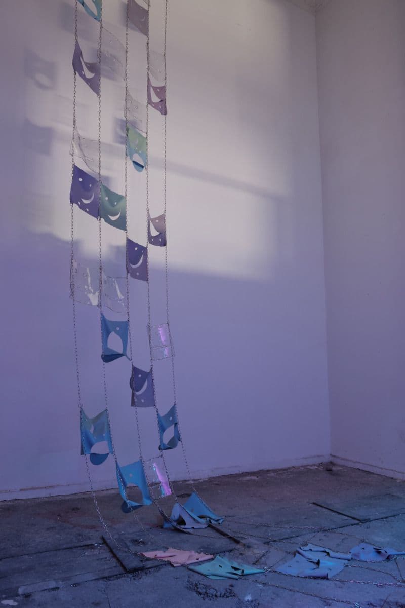 Helena Walter system failure, 2021, 4-Kanal-Soundinstallation, Latex, Ketten, Druckkammerlautsprecher. Foto: Danijel Sijakovic