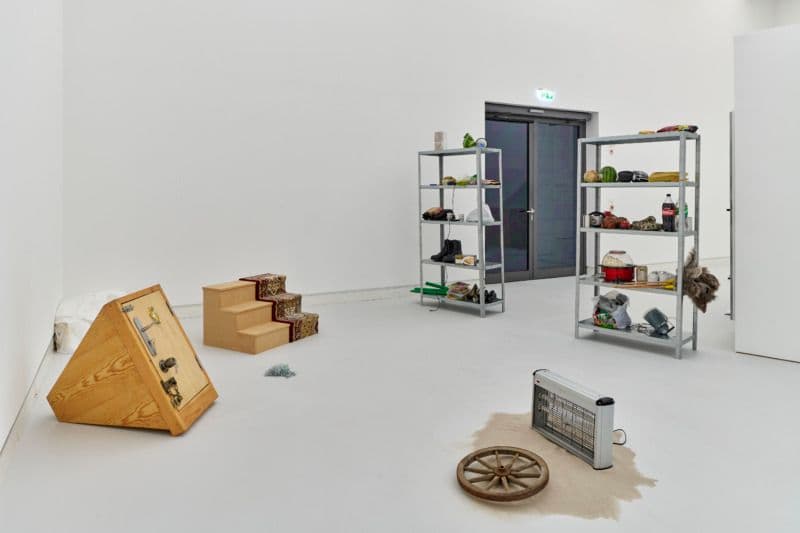 Installation view: Lawrence Abu Hamdan: Earwitness Inventory, 2018-today, 95 objects, shelf, dimensions variable, Courtesy Mor Charpentier, photo: Norbert Miguletz