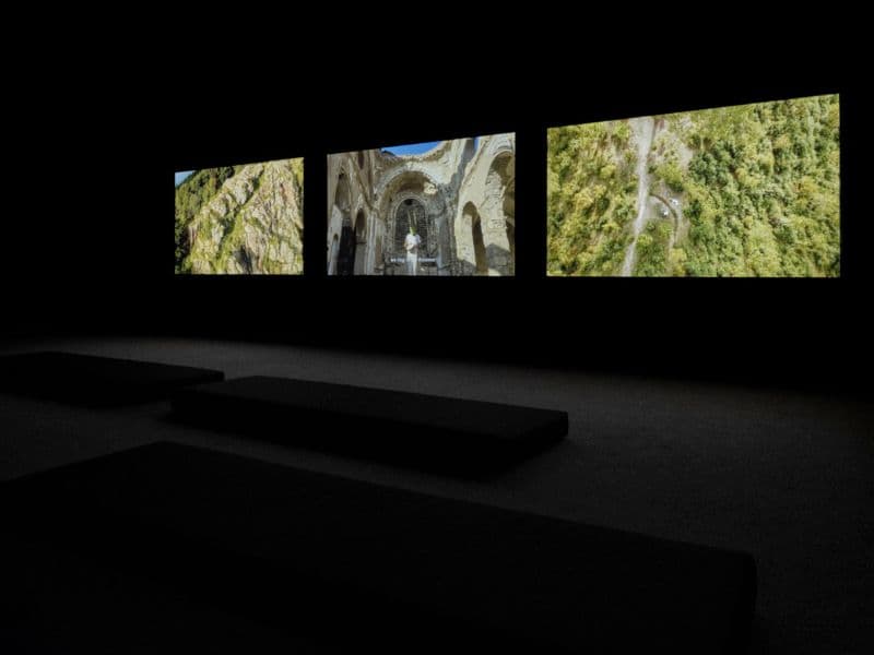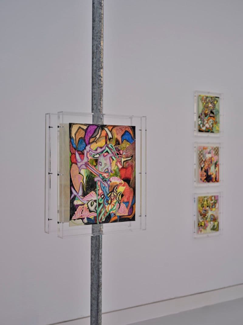 Installationsansicht KHM: Monia Ben Hamouda: About Telepathy and other Violences, Releasing, "In order to me to write poetry [...]" (Flying jiin), 2023. Courtesy the artist and ChertLüdde, Berlin, Photo: Norbert Miguletz