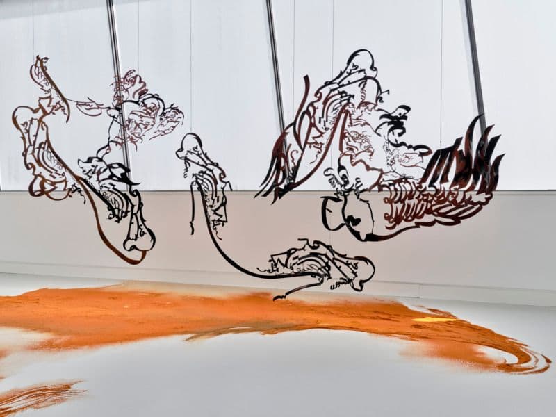 Installationview KHM: Kerstin Brätsch PARA PSYCHIC_Darkening (Squirm), 2020–2021, PARA PSYCHIC_Rand der Welt; _Soulmate; _Pele’s Curse (Frau, Weckerin), 2020-2022. Courtesy by the artist and Gladstone Gallery, Photo Norbert Miguletz