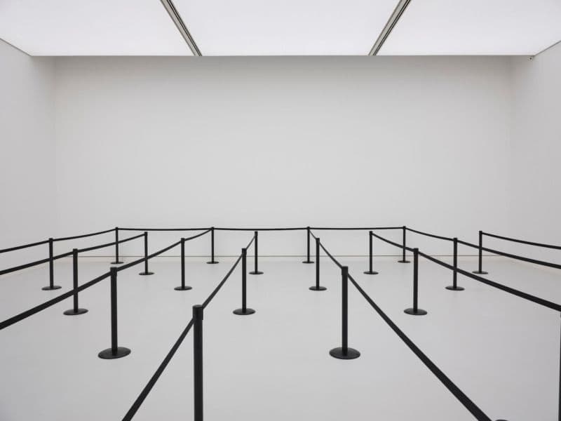 Installationsansicht: Eva Grubinger: Crowed, 2007, Tensabarriers, Dimensions variable, VG Bild-Kunst, Bonn, Foto: Norbert Miguletz