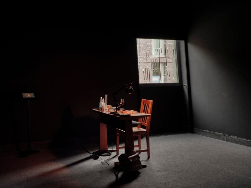 A central role in Baloji’s work is played by his critical enquiry into the colonial archive: beyond the degrading representations and ethnographical assignations it contains, Baloji searches for traces of the practices and historical experiences that inhabitants of the region devised and passed on through all the radical changes their societies underwent. This “confrontation with the colonial archive and its continuities” comprises the second thematic strand in the exhibition. Sybil Coovi Handemagnon is presenting an installation on the toxicity of colonial collections. Here, toxicity refers both to the chemical residues of insecticides that change the use of objects and also to the enduring toxic impact of the plundering of cultural goods during colonial times. Fundi Mwamba Gustave & Antje Van Wichelen’s experimental horror film follows Dr. Fundi, the filmmaker’s fictitious alter ego, as he searches for an antidote that can curb the metamorphosis of people into monsters which has been triggered by environmental pollution. Isaac Sahani Dato’s multi-media-installation Topos was preceded by lengthy research on colonial maps, the designations of places, the new names given them, and their appropriation by the colonial power in question.