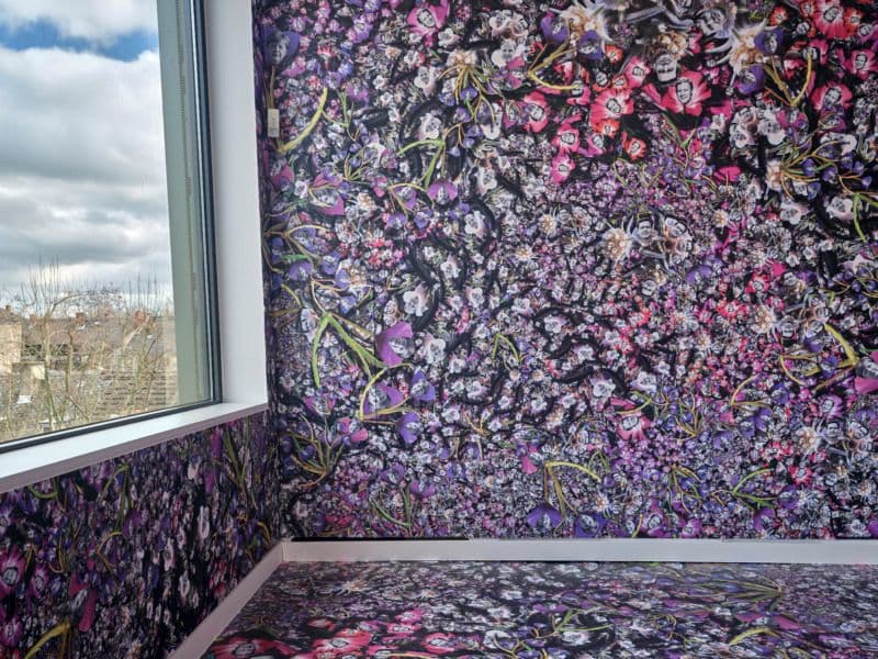 Installation view: Walid Raad: Better be watching some clouds, 2022, printed PVC film, size similar to room dimensions, Courtesy the artist, Photo: Norbert Miguletz
